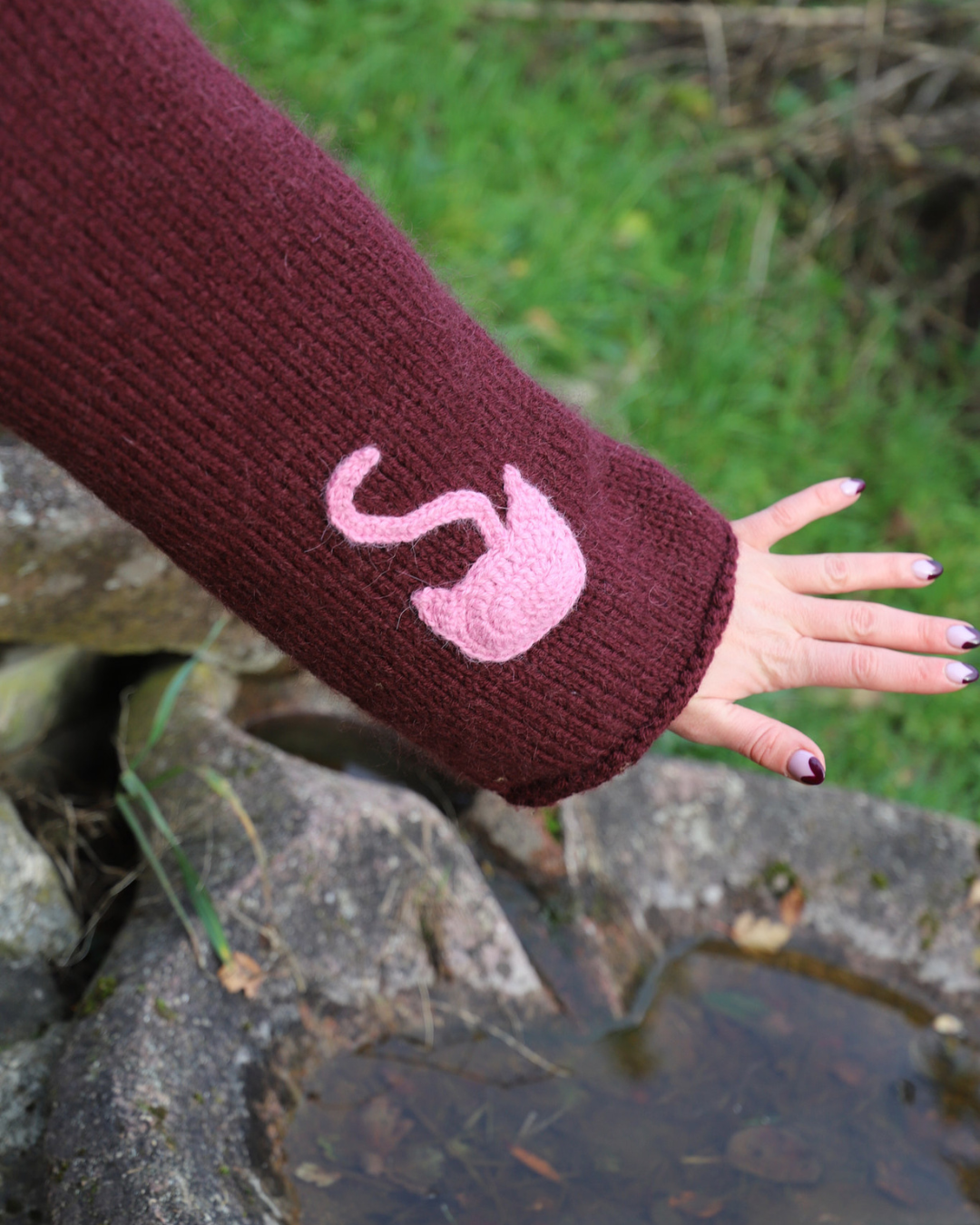 For mig er katten et symbol på styrke, selvstændighed og legesyge. Den tør være præcis som den er, og er ret ligeglad med, om du kan lide den eller ej. Den er sejlivet, modig, mystisk. Og den siges at have ni liv. Derfor har jeg nu givet jer muligheden for at tilføre lidt af den energi til jeres næste sweater, eller en af jeres gamle, der trænger til nyt liv.