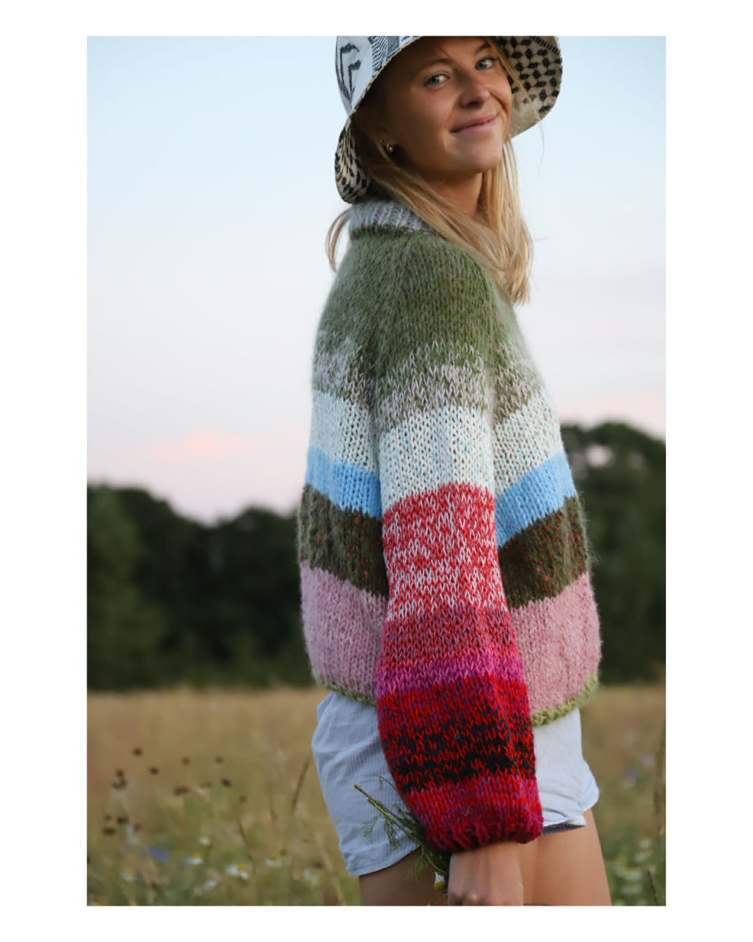 Denne sweater er designet til at blive strikket med garnrester. Det er ikke sværere end at strikke med almindeligt garn – du skifter blot farve, når du ønsker det. Strik med garnrester er som det, du allerede kender, bare en lille smule mere spændende, bæredygtigt og bevidst - sweateren kan også strikkes i ensfarvet/nyt garn - se mere under garnforslag.