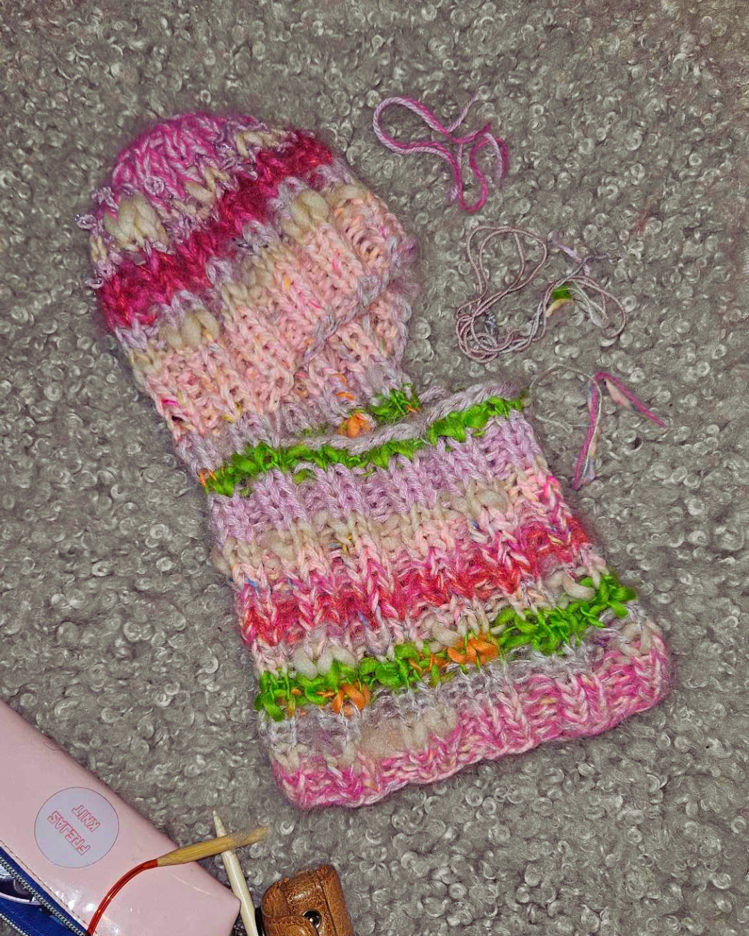 Jeg har strikket min hue i et miks af garnrester, jeg har strikket med 2-3 tråde af gangen. Her er et par eksempler på de garner jeg har brugt sammen: