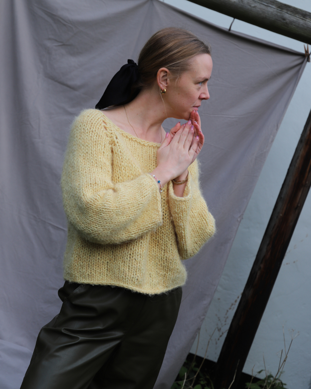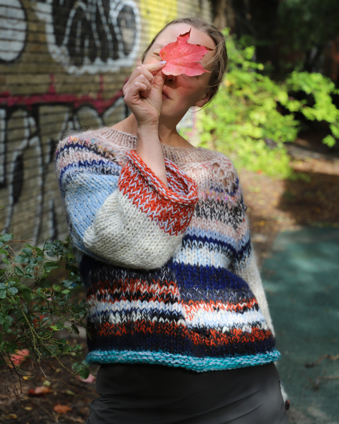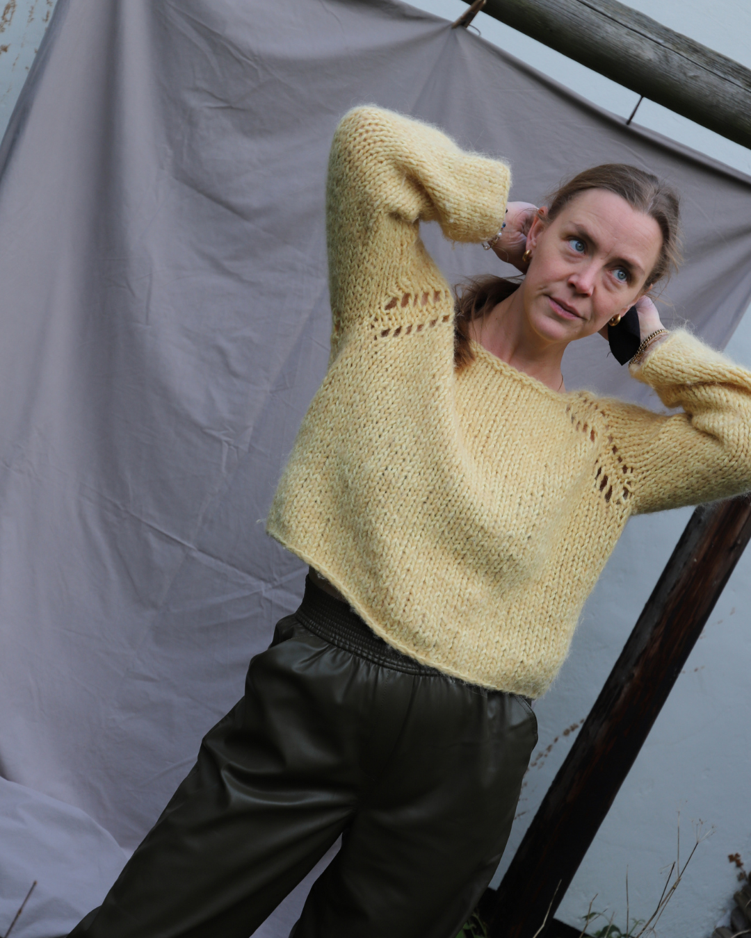 Blusen har et bevægelesrum på ca. 10 cm. Mål dig selv på det bredeste sted på brystet og læg 10 cm til dit mål. Vælg den størrelse, der ligger tættest på eller gå en størrelse ned for en mere tætsiddende version, eller en størrelse op for en løsere oversize strik.