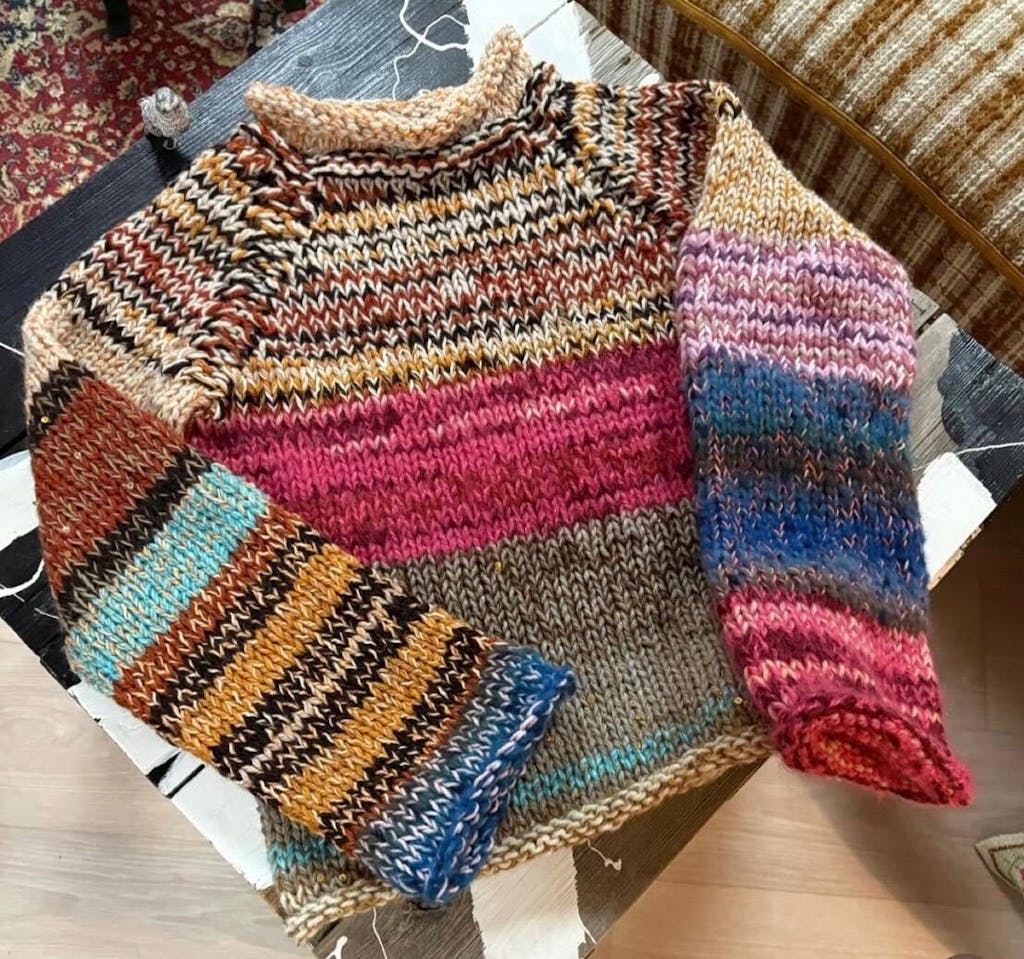 Jeg har nu lavet 5 trøjer med samme opskrift dog med forskellig tykkelse garn. Og alle trøjer er blevet et hit. Tak for en skøn begyndelse på mit strikke-eventyr.