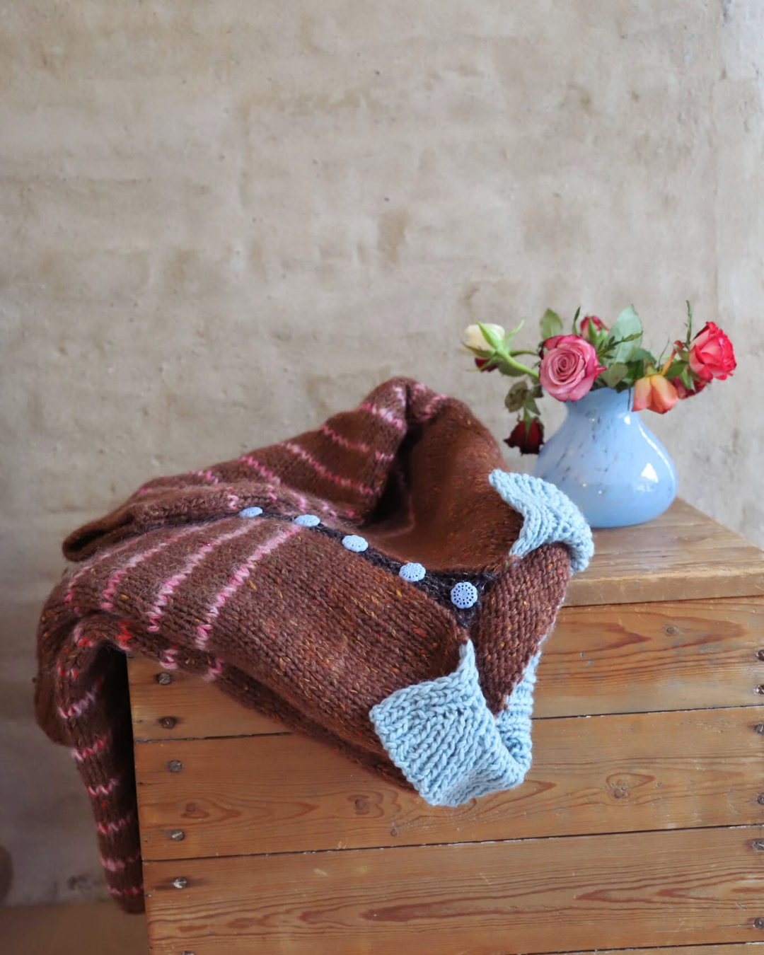 Jeg har strikket den brune trøje i 1 tråd Tweed Delight fra Hobbii sammen med 1 tråd Silk Mohair