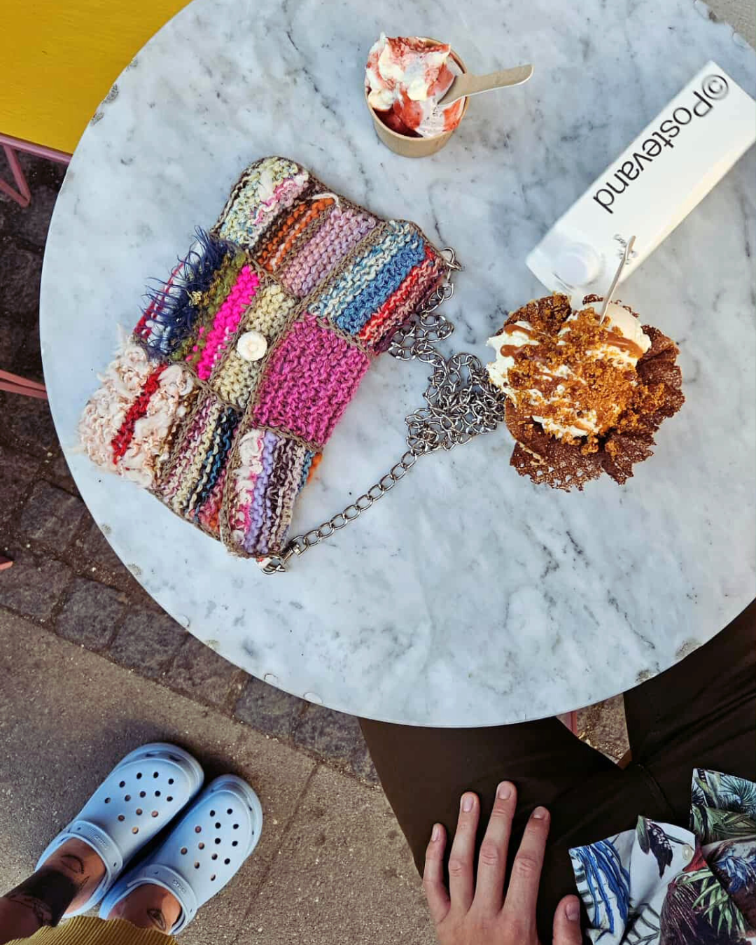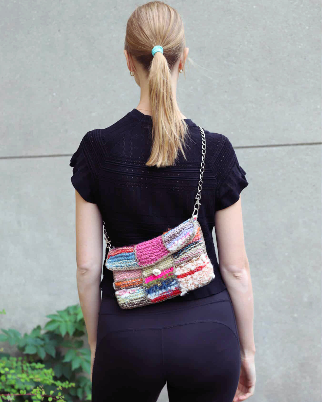 Coco’s Boho Bag er inspireret af Chanels smukke patchworktasker (søg bare på Google hvis du ikke kender dem). Den er mit bud på en festlig lille taske, der kan strikkes i et snuptag.