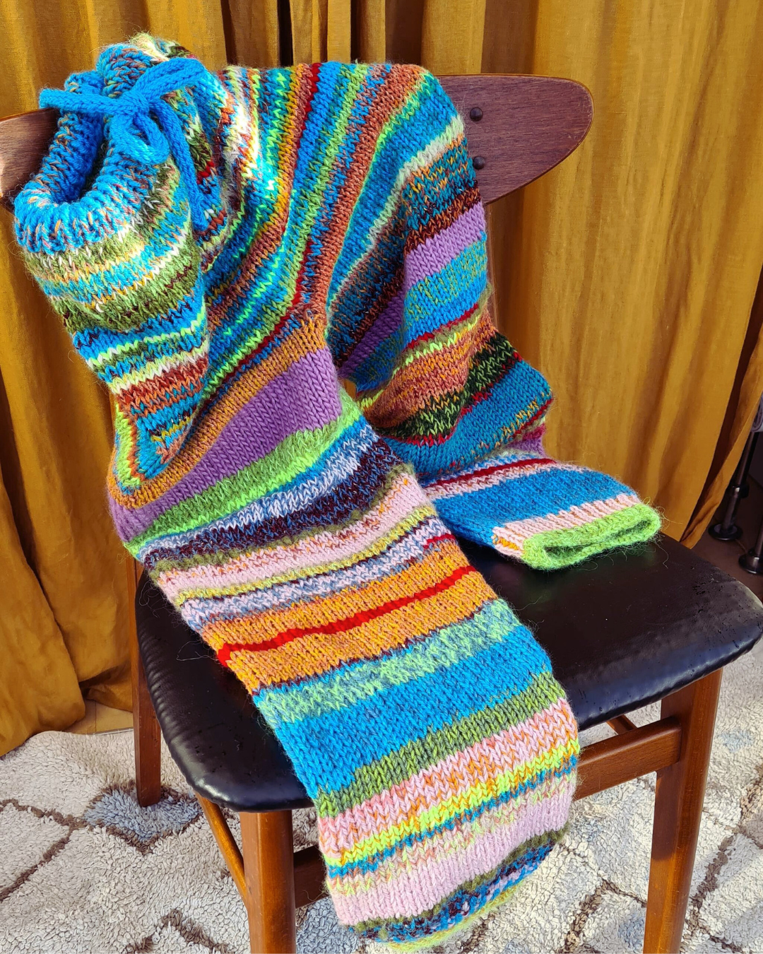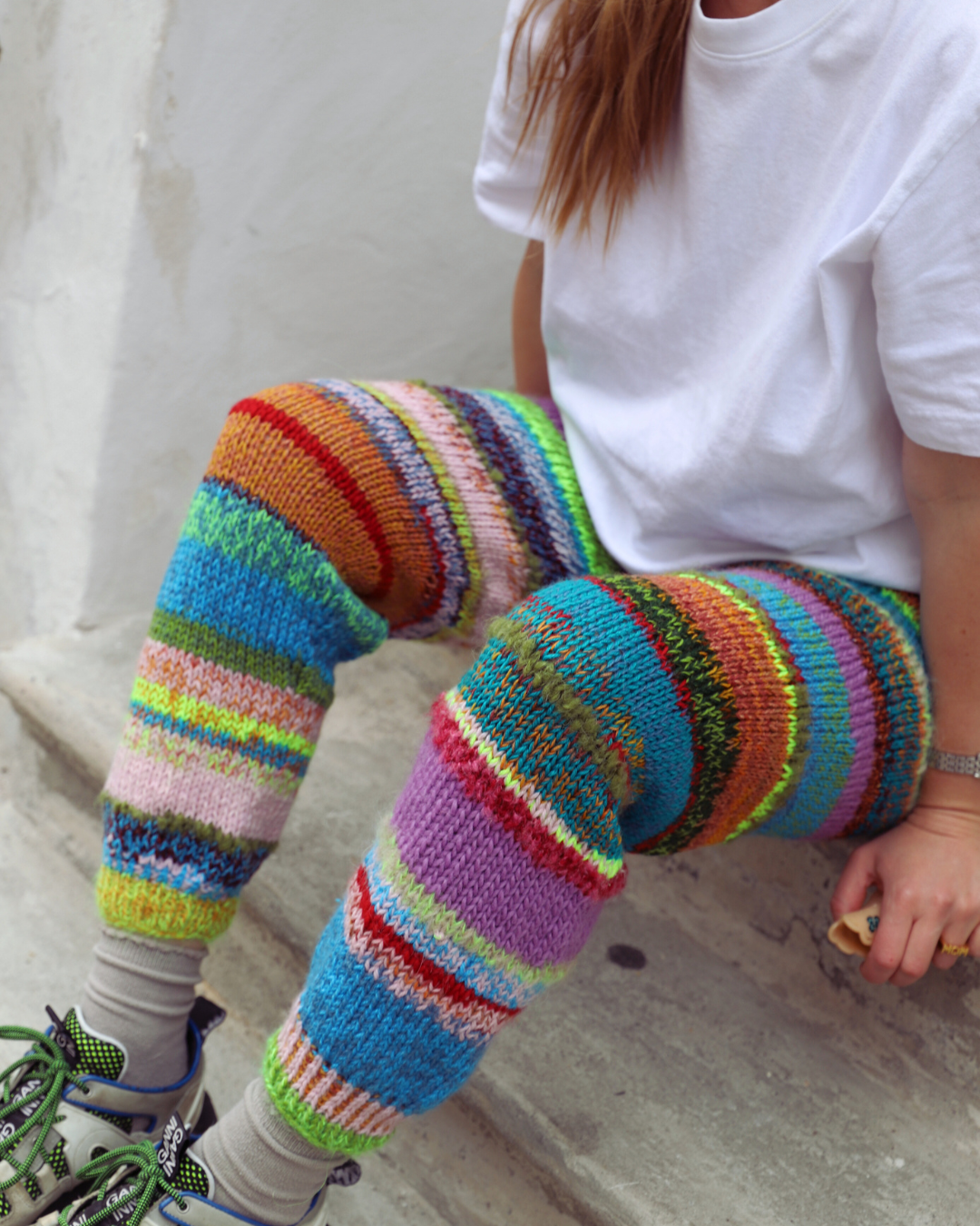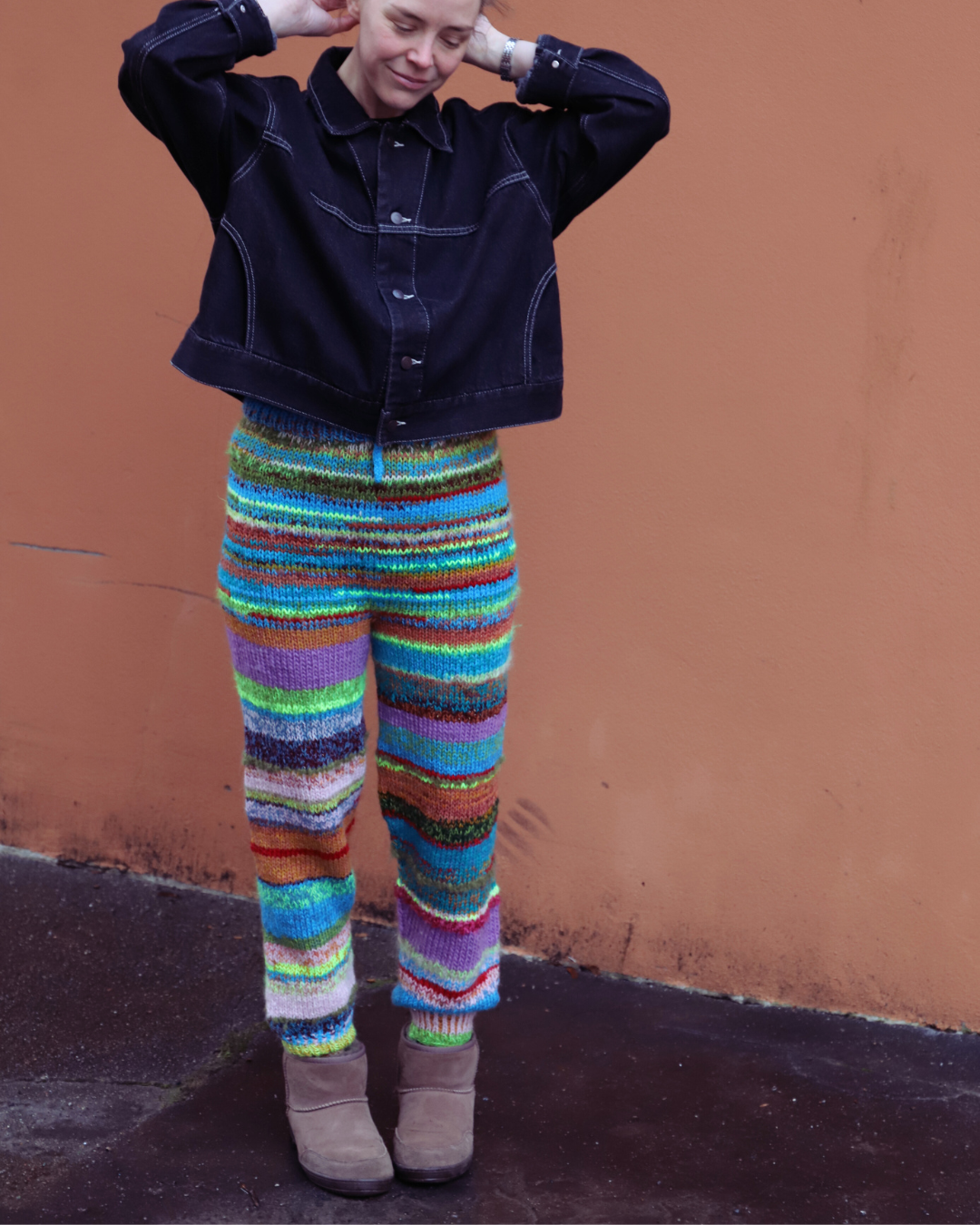 Frida Pants er den ultimative opskrift til dig, der elsker at skabe unikt tøj med masser af personlighed – og samtidig få brugt alle de garnrester, du har liggende. Frida Pants kan bruges til afslapning derhjemme, men ser også seje ud udenfor hjemmet.
