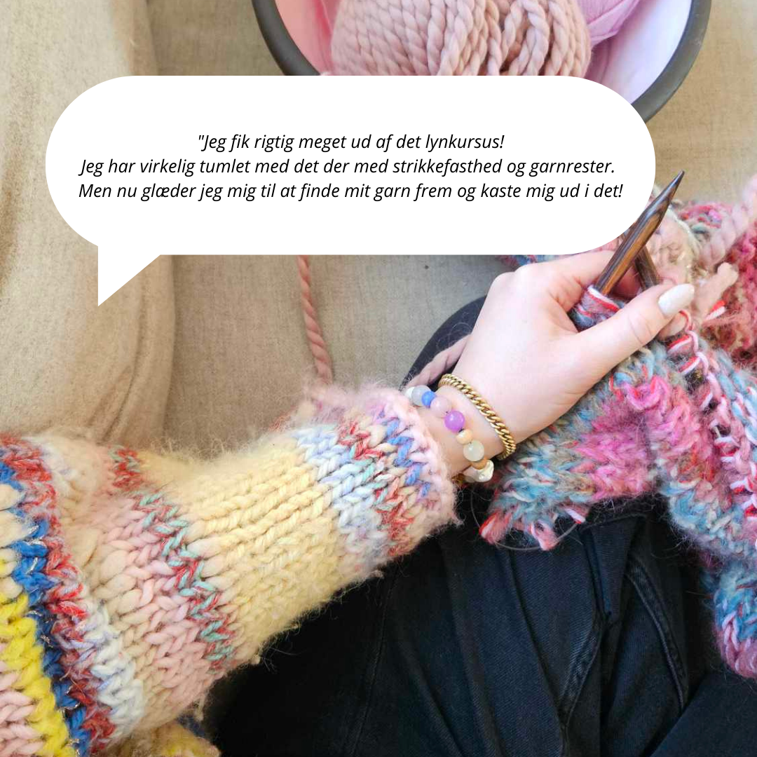 Lynkurset guider dig nemt gennem processen med korte videoer og en praktisk tjekliste, så du kan komme i gang med det samme og få glæde af dit garn – uden at overkomplicere det.