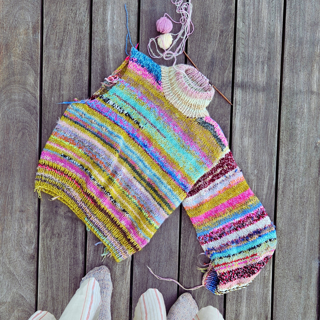 Jeg har undervist i mere end 100 workshops de sidste 5 år – og her får du de tre mest populære metoder til at strikke med rester på en overskuelig og kreativ måde.