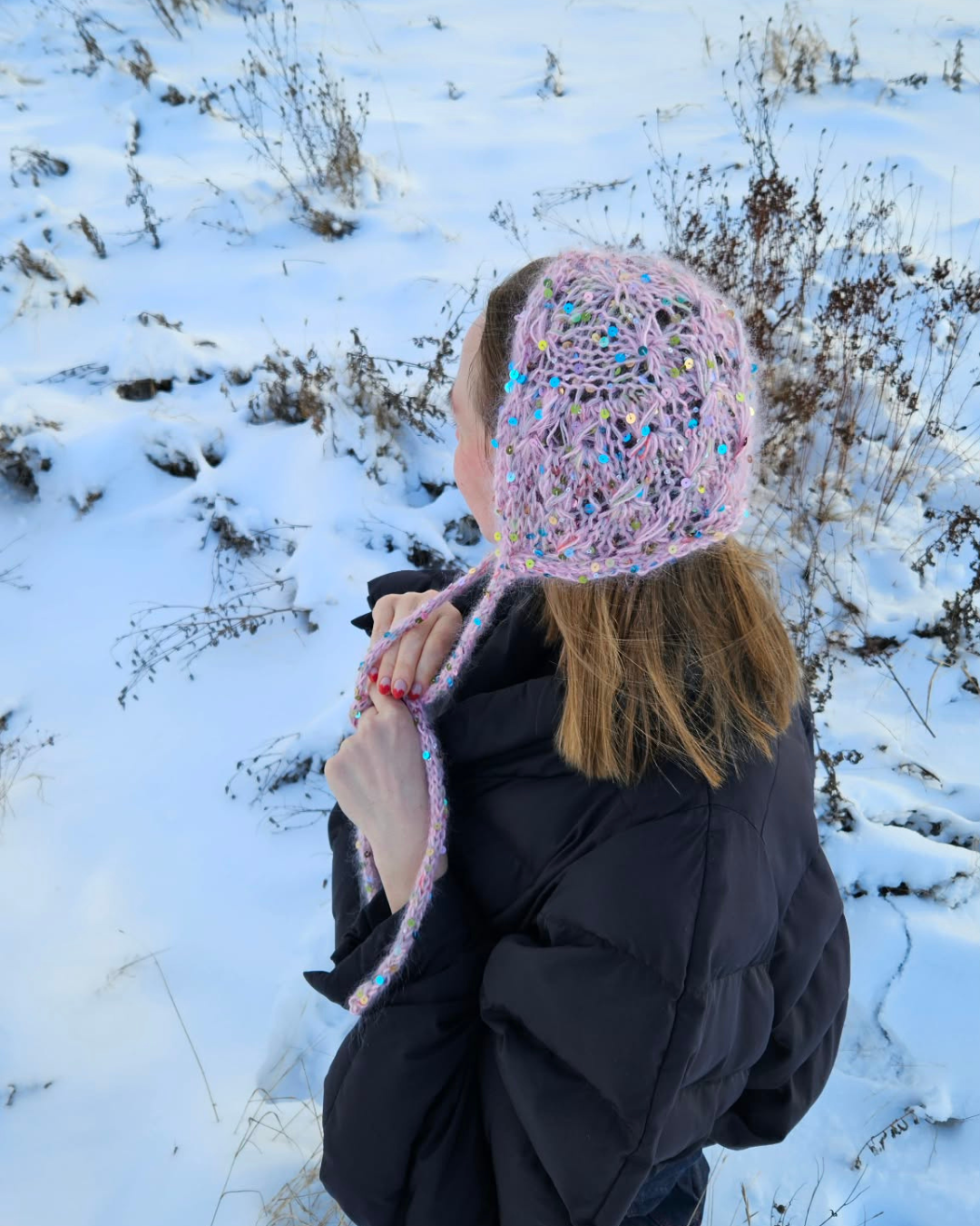 Pumkin Spice Bonnet strikkes oppefra og ned med struktur. Først strikkes toppen af hovedet, derefter samles der masker op langs siderne og resten af kysen strikkes frem og tilbage i struktur. Til slut strikkes en kant og snor.