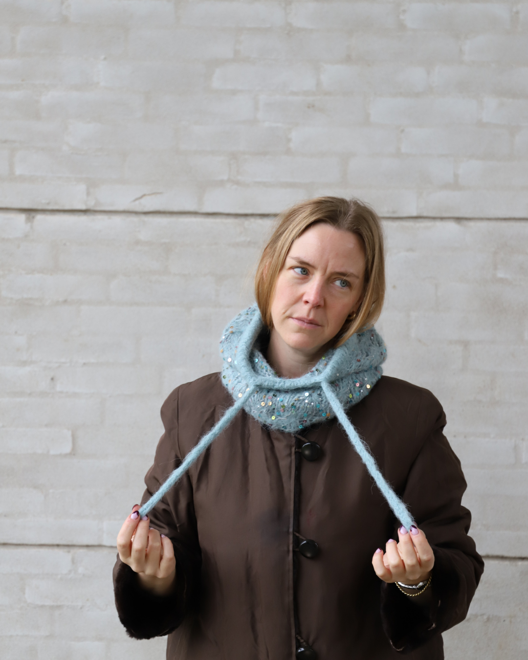 Til sidst strikkes en icord snor, som trækkes igennem løbegangen.