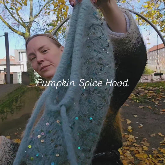 Pumpkin Spice Hood strikkes oppefra og ned med struktur. Først strikkes toppen af hovedet, derefter samles der masker op langs siderne og resten af huen strikkes frem og tilbage i struktur. Når hætten har den rette længde, samles arbejdet og der strikkes rundt, fortsat med struktur. Afslutningsvis samles der masker op langs åbningen foran, med pind 8, som afsluttes med en løbegang.