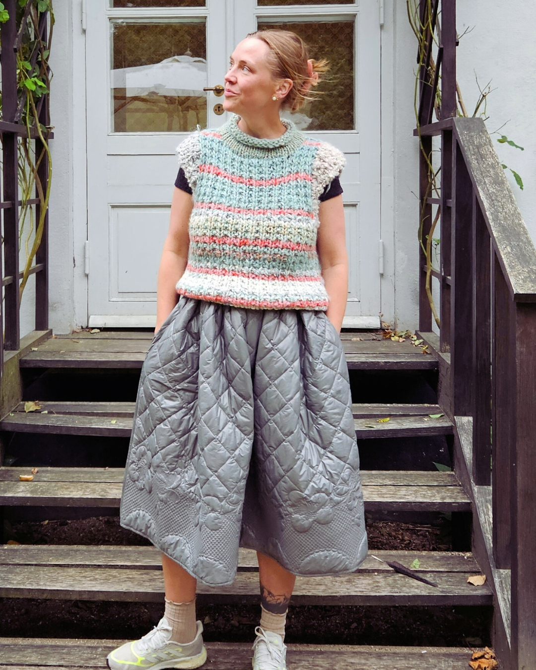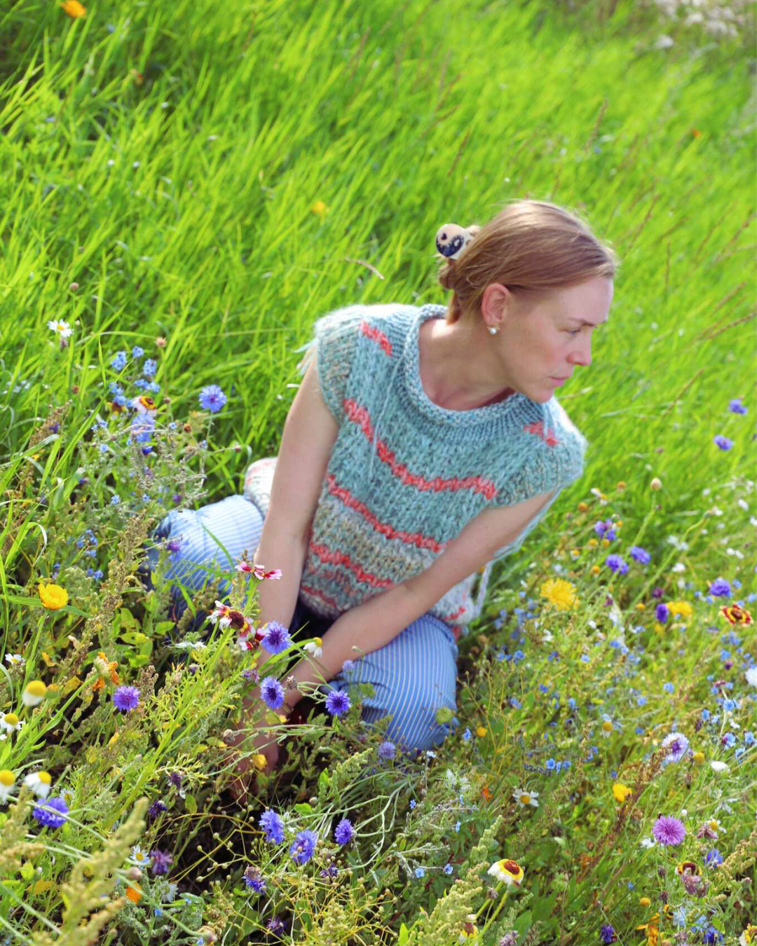 Shelly Toppen strikkes oppefra og ned på pind 10 - eller den pind du skal bruge for at ramme strikkefastheden!