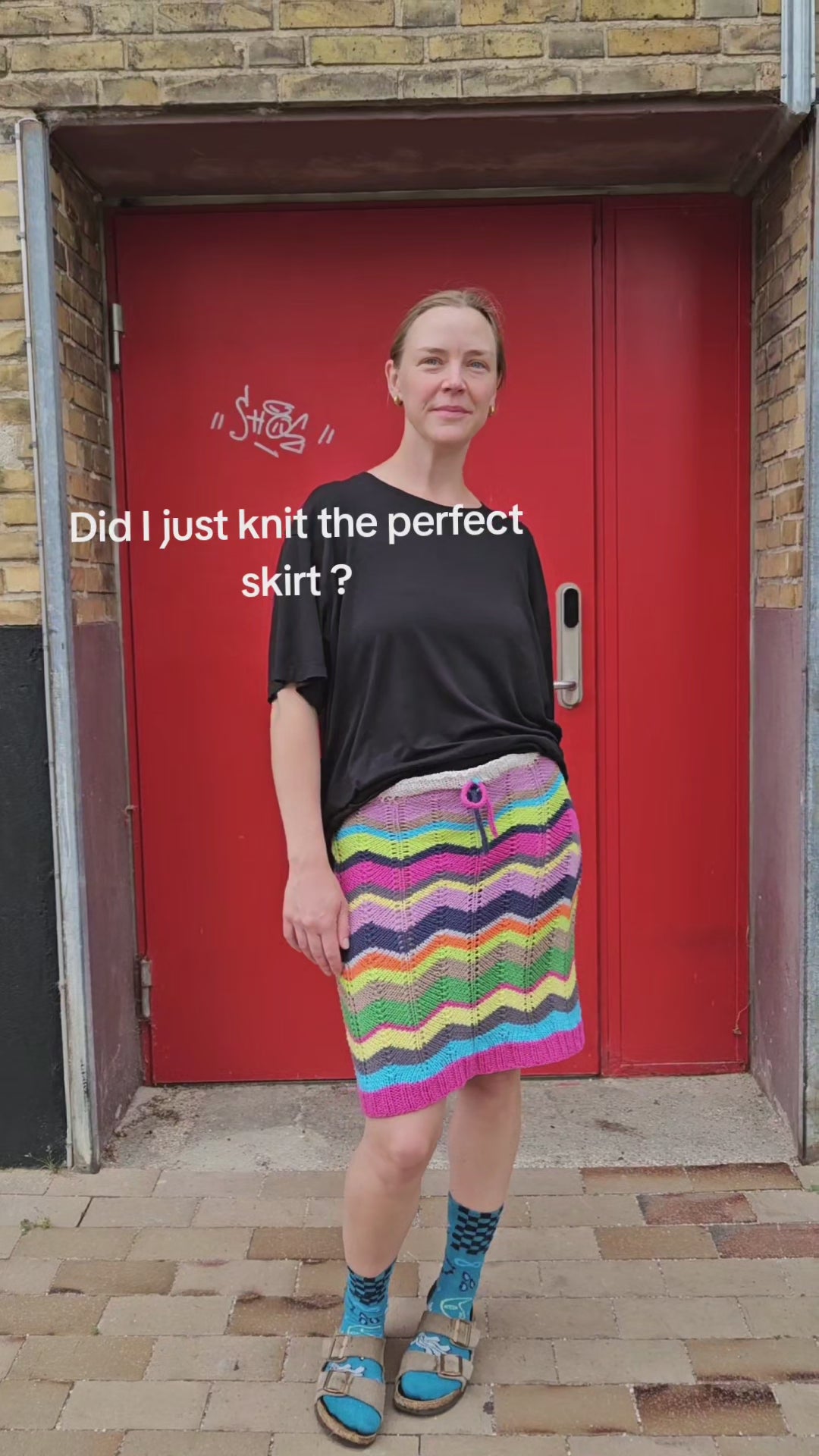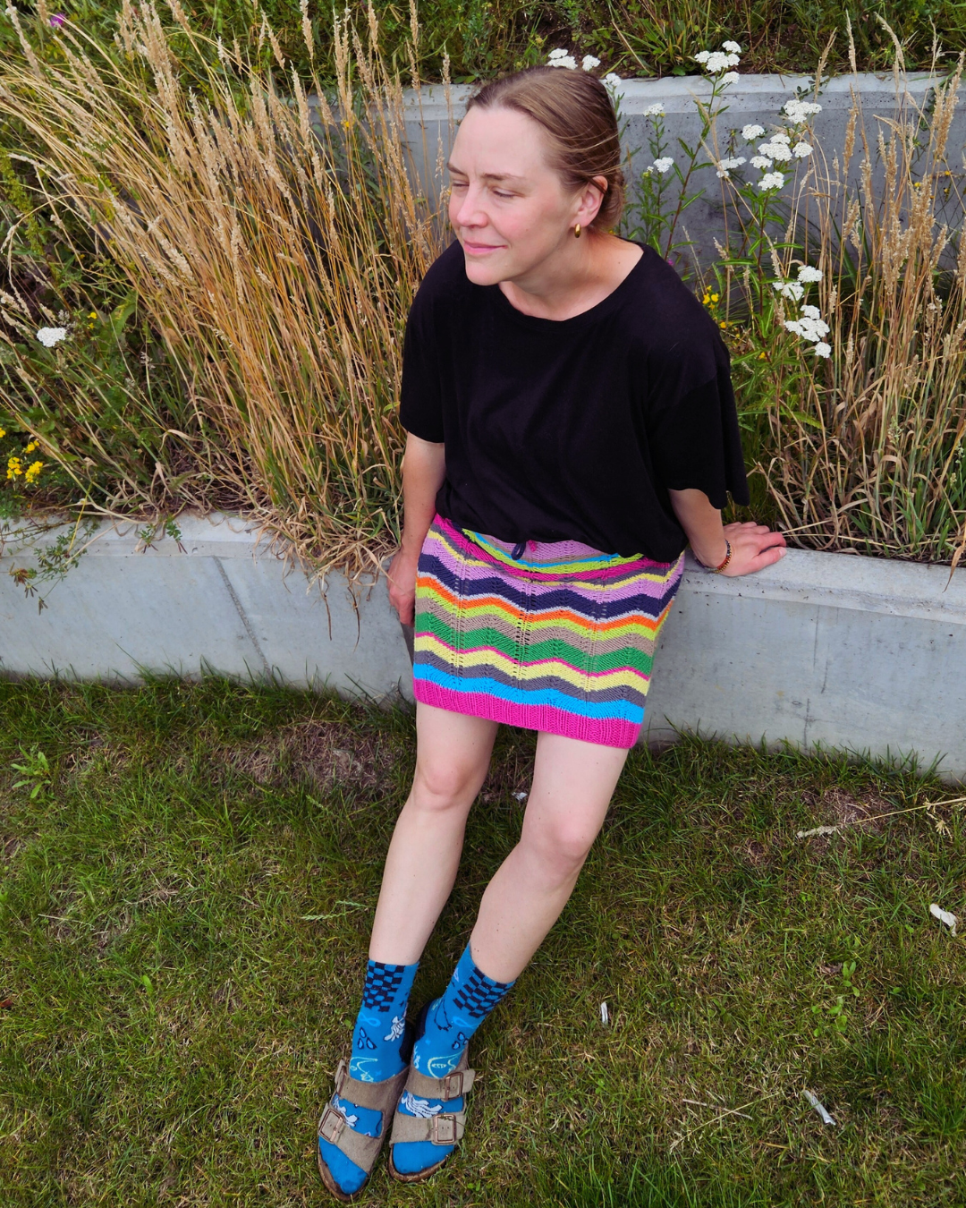 Bomuld giver sig ved brug, overvej derfor, om du vil have nederdelen til at sidde til eller løst. Hvis de skal sidde til, så gå en størrelse ned. Jeg har strikket min med et negativt ease - altså en størrelse under mit eget hoftemål.